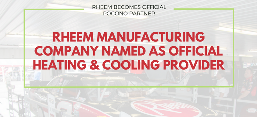 LONG POND, Pa. (May 17, 2017) – Pocono Raceway has named Rheem Manufacturing Company as its Official Heating and Cooling provider.